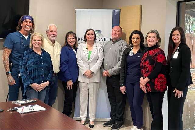 *Pictured Left to Right: David Rupf, Emergency Department Assistant Director; Susan Day, Heritage Society Co-Chair; Leon Lagneaux, Business Honor Society Chair; Traci Thibodeaux, CEO; Kie McNabb, CNO; Donald McNabb, Heritage Society Co-Chair; Jamie Perkins, Emergency Department Director; Bobbye Nothnagel Heroes of Hope Co-Chair, Kelli C. Broocks Chief Development Officer and Foundation Director. Board members not pictured: Glenda Dean, Foundation Chair; Donna Perkins, Heroes of Hope Co-Chair