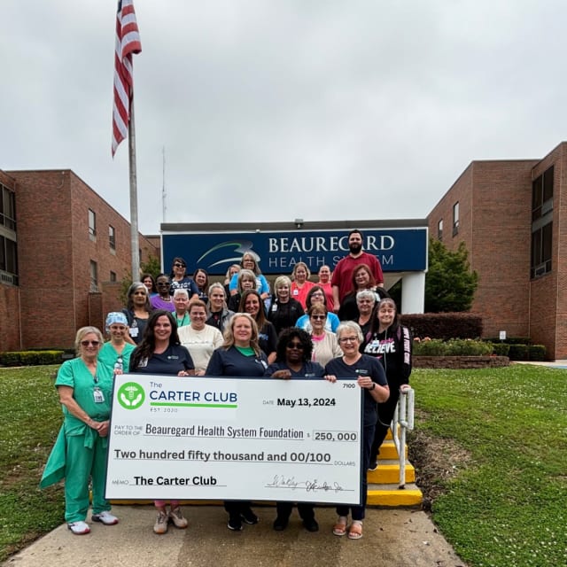 Beauregard Health System is pleased to announce that The Carter Club, The Foundation’s employee giving club, recently made an extremely generous contribution of $250,000.00 to Beauregard Health System Foundation’s Here for Life Capital Campaign. The Carter Club’s spirit of giving shows the tremendous support of the health systems employees for this expansion and the continual improvement of quality healthcare in our community.